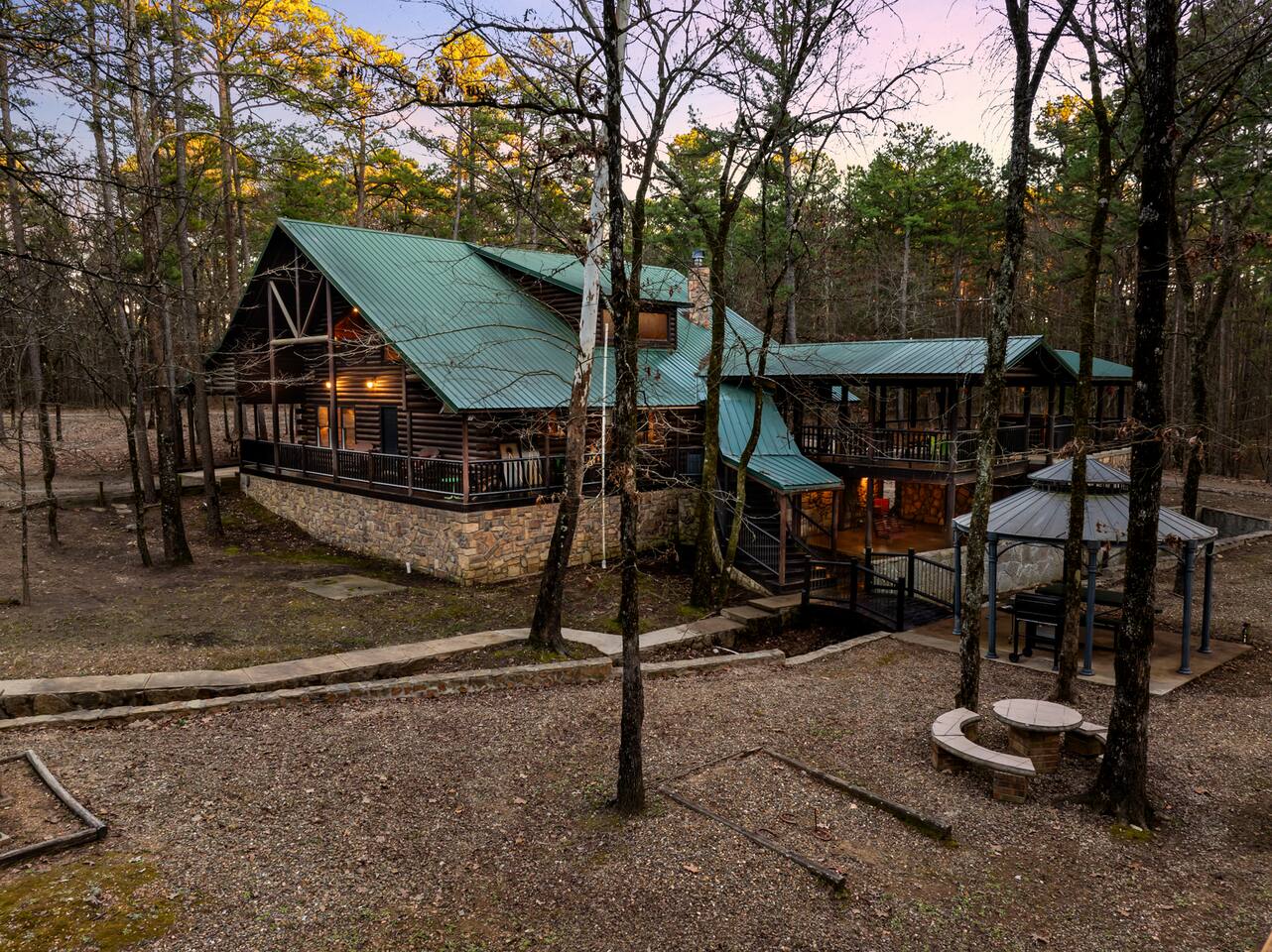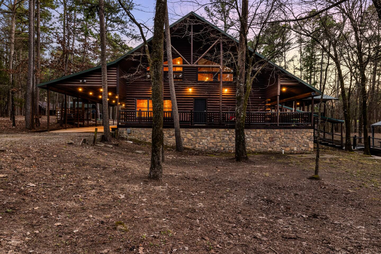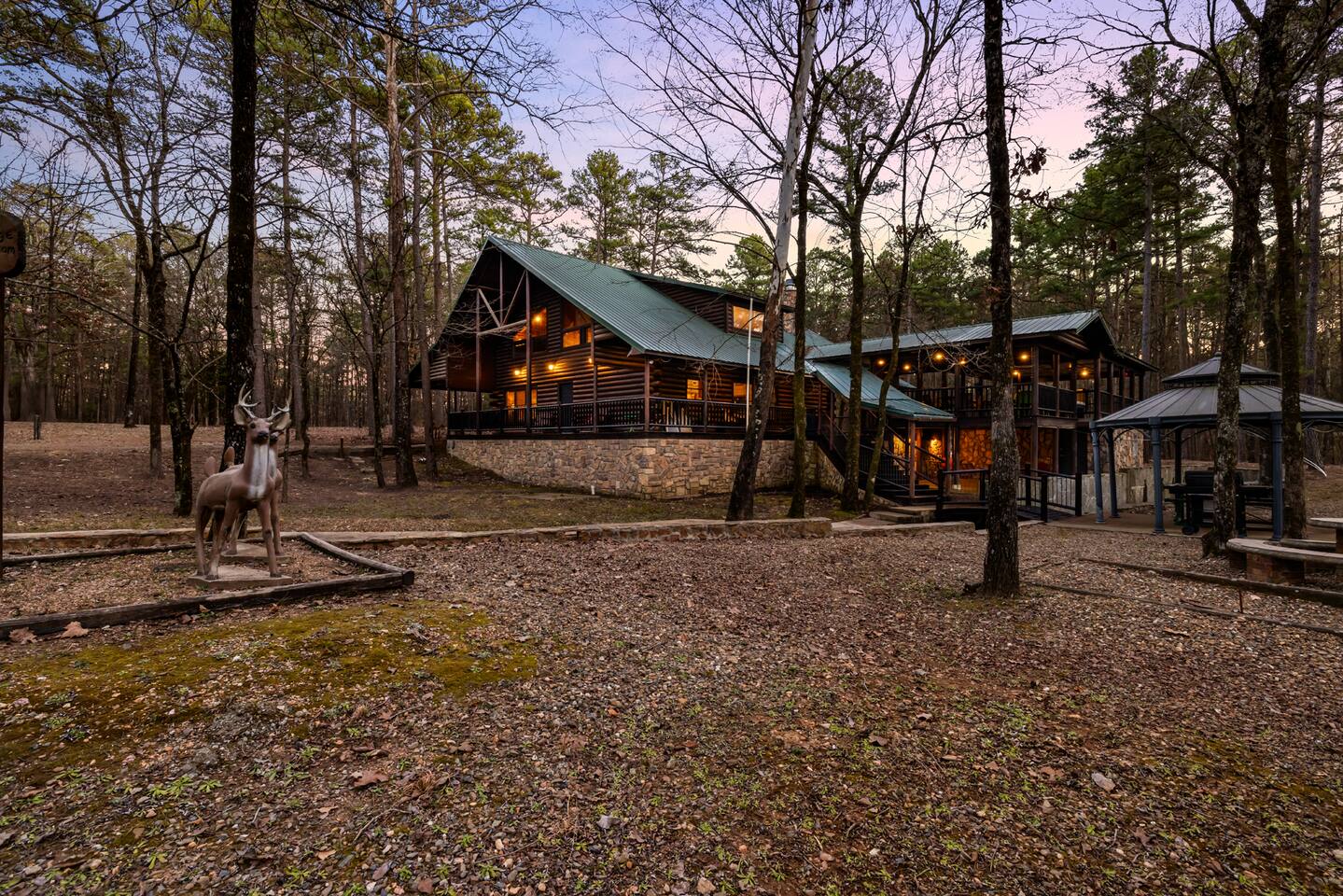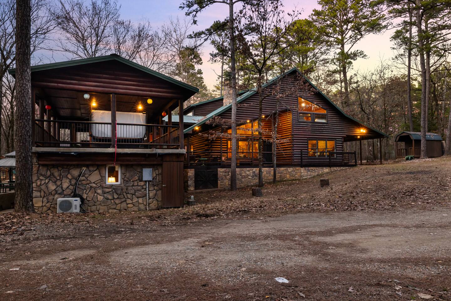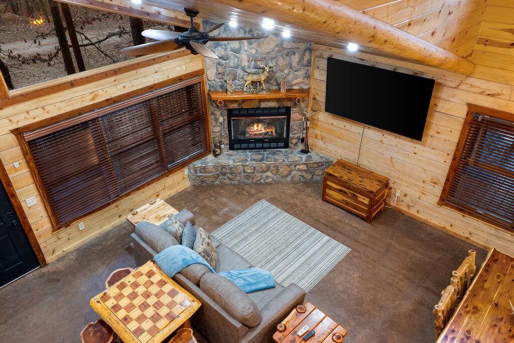 6 bedrooms 3 bathrooms total. The main house has 5 bedrooms and 2 bathrooms with a large great room and fully stocked kitchen. Then there is a separate 1 bed 1 bath unit downstairs. Great for multiple groups or families staying here together. There is a HUGE outdoor entertaining area. A wrap around porch leads you to a massive covered deck and patio area with the hot tub, table tennis and a ton of seating. Head down the steps and it will take you to another covered patio area that leads to the separate 1 bed, 1 bath unit. You will also see a Swinging bench/love seat where you can watch on as your guests play Horse Shoe and Corn hole. Step out to the spacious yard and hang out at the covered Gazebo with picnic bench seating to enjoy what comes off the BBQ. Roast hotdogs and smores at the fire pit while you watch the kids rock climb and slide down the playground. House Trained Dogs are welcome for a fee. Need help maximizing your time here? Take advantage our our Concierge team to help you find the right activities and tours. Tired or cooking? We can help you find a private chef or catering for your group (advanced booking required). This is the perfect destinations for those looking to escape the hustle and bustle of everyday life and immerse themselves in nature’s beauty. Nestled in the heart of the Ouachita Mountains, this area offers a blend of outdoor adventures and serene relaxation, making it ideal for families, groups, and outdoor enthusiasts. The region’s crown jewel is Beavers Bend State Park, a sprawling 3,500-acre park where visitors can enjoy hiking, fishing, and scenic views of the Mountain Fork River. Whether you’re casting a line into the crystal-clear waters of Broken Bow Lake, taking a leisurely boat ride across its 14,000 acres, or hiking along trails that wind through lush forests, the area offers something for everyone. For those seeking a bit more adventure, you can go on an exhilarating ziplining experiences, providing breathtaking views of the Ouachita Mountains. From there you can head to the Marina to catch a fishing tour or a famous Tiki Boat Tour. Nature lovers and families alike will find delight at the Hochatown Petting Zoo and Beavers Bend Mining Company, where guests can interact with animals and pan for gems and fossils. For a more tranquil experience, visit the Beavers Bend Wildlife Museum to marvel at the region’s impressive collection of taxidermy and wildlife dioramas. If you’re feeling lucky, make your way to Choctaw Casino & Resort – Hochatown, where you can try your hand at gaming, enjoy a variety of dining options, and take in live entertainment. Add our listing to your wishlist by clicking the ❤ in the upper-right corner. The space KEY FEATURES: 🛏️ 6 Private Bedrooms, 11 Separate beds 🍽️ Full kitchen w/ modern appliances and cookware 🔥 Cozy great room w/ flatscreen 70" TV + gas fireplace ☀ Washer + dryer ♨️ Private hot tub that is drained, sanitized & refilled at every turnover 📺 7 Large Smart TV's 🔥 Outdoor fire pit + lighting 🛻 Free parking for multiple vehicles 🚍 2 RV Hookups and parking spots 🚤 Covered parking perfect for your boat and truck 🕹️ Game and activity area featuring Table Tennis, Horse shoes and Corn Hole 🏓 Spacious, covered back deck with brand new hot tub and tons of seating 🌲 Outdoor area with a fire pit, Gazeebo, Picnic Benches, BBQ & plenty of space for games and seating for gathering 🛝 Children's play set 🌐 Lighting Fast Wifi 🐕 Dog Friendly ($199 for up to 2 dogs) The Location: So convenient to everything you need: 🏖 2 miles to Broken Bow Lake 🎳 Less that a mile to Bowling 🎱 Less that a mile to Billiards 🎤 Less that a mile to Karaoke 🎮 Less that a mile to Arcade 🍷 Less that a mile to Girls Gone Wild Wine Bar 🍺 Less that a mile to Beavers Bend Brewery ☕️ Less that a mile to Coffee Shop 🍳 Less that a mile to Convenience Store 🍔 Less that a mile to multiple restaurants, grills, Pizza shops, BBQ, bars etc 🦖 1 mile to indoor mining, Dino mini golf, Wax hand creations, Pirates Cove and more 🫣 2 miles to the Maze of Hochatown 🚤 2-4 miles to multiple boat ramps 𓀒 3 miles to Zipline Tours 🛟 4 miles to Marina 🐟 4 miles to fishing tours 🛥 4 miles to Tiki Boat tours ⛳️ 4 miles to mini golf 🏎 4 miles to Go-Kart Racing 🏎 4 miles to Polaris Slingshot Rentals 🛺 5 miles to UTV and Jeep Rentals 🏞 8 miles to Beavers Bend State Park 🌽 10 mile to Walmart 🎰 12 miles to Choctaw Casino Bedroom breakdown 🛏 Upstairs left bedroom: 1 king bed 🛏 🛏 🛏 Upstairs right bedroom: 1 king bed + 2 full beds 🛏 Main level left bedroom: 1 king bed 🛏 🛏 Main level middle bedroom: 2 queen beds (bunk beds) 🛏 Main level right bedroom: 1 king bed 🛏 🛏 Downstairs separate room: 2 queen beds 🛏 Living room: Pullout queen sofa Replenishing Supplies: Our accommodations are designed for self-catering convenience. We are delighted to furnish you with initial supplies to kickstart your stay. Once these supplies are depleted, you will need to replenish them independently during your stay.