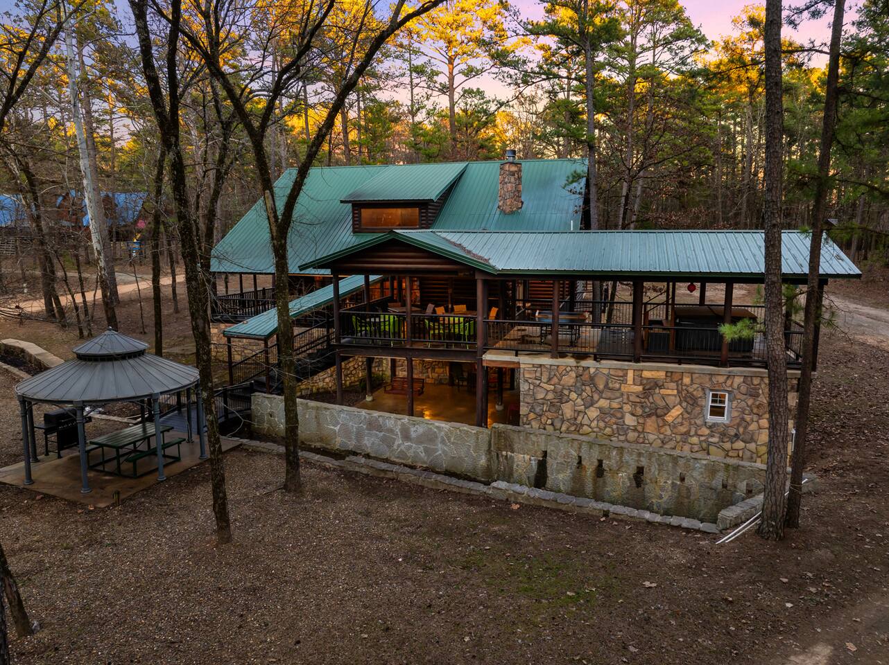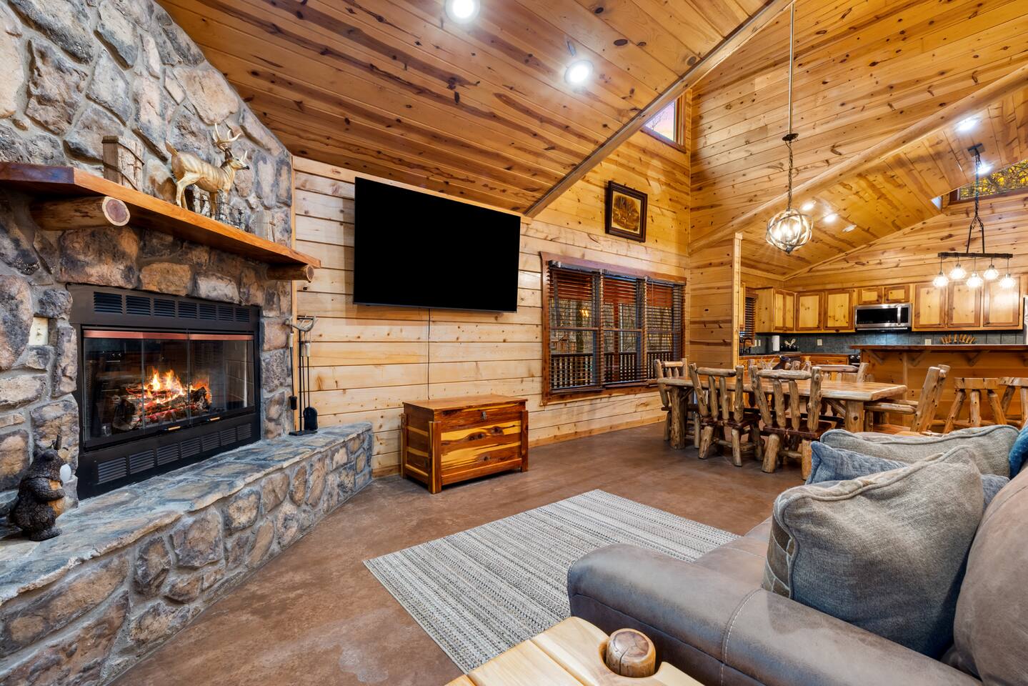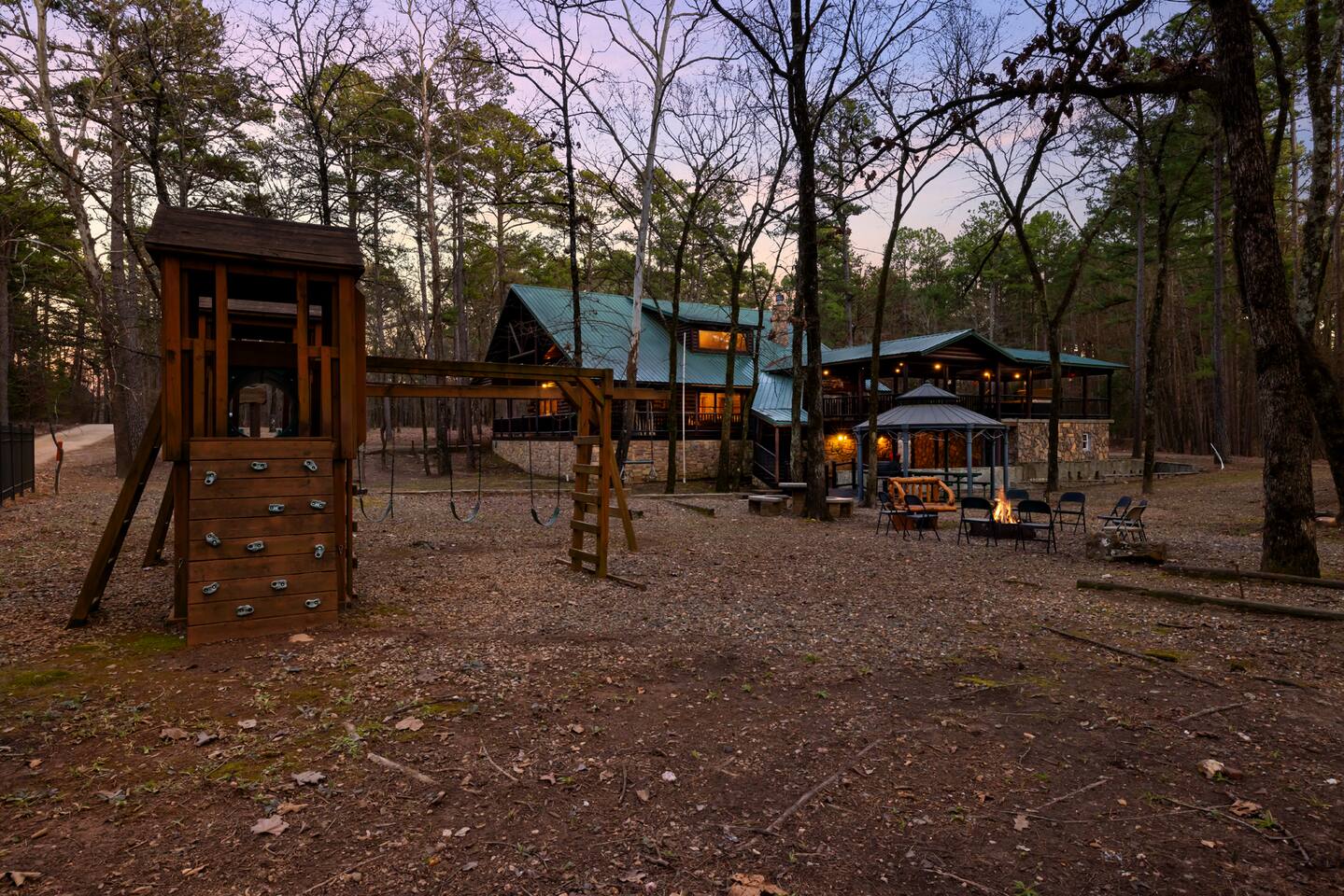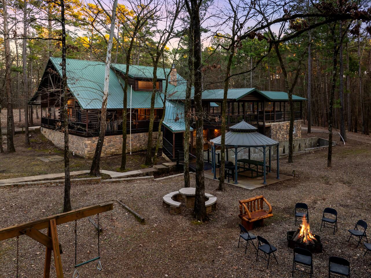 6 bedrooms 3 bathrooms total. The main house has 5 bedrooms and 2 bathrooms with a large great room and fully stocked kitchen. Then there is a separate 1 bed 1 bath unit downstairs. Great for multiple groups or families staying here together. There is a HUGE outdoor entertaining area. A wrap around porch leads you to a massive covered deck and patio area with the hot tub, table tennis and a ton of seating. Head down the steps and it will take you to another covered patio area that leads to the separate 1 bed, 1 bath unit. You will also see a Swinging bench/love seat where you can watch on as your guests play Horse Shoe and Corn hole. Step out to the spacious yard and hang out at the covered Gazebo with picnic bench seating to enjoy what comes off the BBQ. Roast hotdogs and smores at the fire pit while you watch the kids rock climb and slide down the playground. House Trained Dogs are welcome for a fee. Need help maximizing your time here? Take advantage our our Concierge team to help you find the right activities and tours. Tired or cooking? We can help you find a private chef or catering for your group (advanced booking required). This is the perfect destinations for those looking to escape the hustle and bustle of everyday life and immerse themselves in nature’s beauty. Nestled in the heart of the Ouachita Mountains, this area offers a blend of outdoor adventures and serene relaxation, making it ideal for families, groups, and outdoor enthusiasts. The region’s crown jewel is Beavers Bend State Park, a sprawling 3,500-acre park where visitors can enjoy hiking, fishing, and scenic views of the Mountain Fork River. Whether you’re casting a line into the crystal-clear waters of Broken Bow Lake, taking a leisurely boat ride across its 14,000 acres, or hiking along trails that wind through lush forests, the area offers something for everyone. For those seeking a bit more adventure, you can go on an exhilarating ziplining experiences, providing breathtaking views of the Ouachita Mountains. From there you can head to the Marina to catch a fishing tour or a famous Tiki Boat Tour. Nature lovers and families alike will find delight at the Hochatown Petting Zoo and Beavers Bend Mining Company, where guests can interact with animals and pan for gems and fossils. For a more tranquil experience, visit the Beavers Bend Wildlife Museum to marvel at the region’s impressive collection of taxidermy and wildlife dioramas. If you’re feeling lucky, make your way to Choctaw Casino & Resort – Hochatown, where you can try your hand at gaming, enjoy a variety of dining options, and take in live entertainment. Add our listing to your wishlist by clicking the ❤ in the upper-right corner. The space KEY FEATURES: 🛏️ 6 Private Bedrooms, 11 Separate beds 🍽️ Full kitchen w/ modern appliances and cookware 🔥 Cozy great room w/ flatscreen 70" TV + gas fireplace ☀ Washer + dryer ♨️ Private hot tub that is drained, sanitized & refilled at every turnover 📺 7 Large Smart TV's 🔥 Outdoor fire pit + lighting 🛻 Free parking for multiple vehicles 🚍 2 RV Hookups and parking spots 🚤 Covered parking perfect for your boat and truck 🕹️ Game and activity area featuring Table Tennis, Horse shoes and Corn Hole 🏓 Spacious, covered back deck with brand new hot tub and tons of seating 🌲 Outdoor area with a fire pit, Gazeebo, Picnic Benches, BBQ & plenty of space for games and seating for gathering 🛝 Children's play set 🌐 Lighting Fast Wifi 🐕 Dog Friendly ($199 for up to 2 dogs) The Location: So convenient to everything you need: 🏖 2 miles to Broken Bow Lake 🎳 Less that a mile to Bowling 🎱 Less that a mile to Billiards 🎤 Less that a mile to Karaoke 🎮 Less that a mile to Arcade 🍷 Less that a mile to Girls Gone Wild Wine Bar 🍺 Less that a mile to Beavers Bend Brewery ☕️ Less that a mile to Coffee Shop 🍳 Less that a mile to Convenience Store 🍔 Less that a mile to multiple restaurants, grills, Pizza shops, BBQ, bars etc 🦖 1 mile to indoor mining, Dino mini golf, Wax hand creations, Pirates Cove and more 🫣 2 miles to the Maze of Hochatown 🚤 2-4 miles to multiple boat ramps 𓀒 3 miles to Zipline Tours 🛟 4 miles to Marina 🐟 4 miles to fishing tours 🛥 4 miles to Tiki Boat tours ⛳️ 4 miles to mini golf 🏎 4 miles to Go-Kart Racing 🏎 4 miles to Polaris Slingshot Rentals 🛺 5 miles to UTV and Jeep Rentals 🏞 8 miles to Beavers Bend State Park 🌽 10 mile to Walmart 🎰 12 miles to Choctaw Casino Bedroom breakdown 🛏 Upstairs left bedroom: 1 king bed 🛏 🛏 🛏 Upstairs right bedroom: 1 king bed + 2 full beds 🛏 Main level left bedroom: 1 king bed 🛏 🛏 Main level middle bedroom: 2 queen beds (bunk beds) 🛏 Main level right bedroom: 1 king bed 🛏 🛏 Downstairs separate room: 2 queen beds 🛏 Living room: Pullout queen sofa Replenishing Supplies: Our accommodations are designed for self-catering convenience. We are delighted to furnish you with initial supplies to kickstart your stay. Once these supplies are depleted, you will need to replenish them independently during your stay.