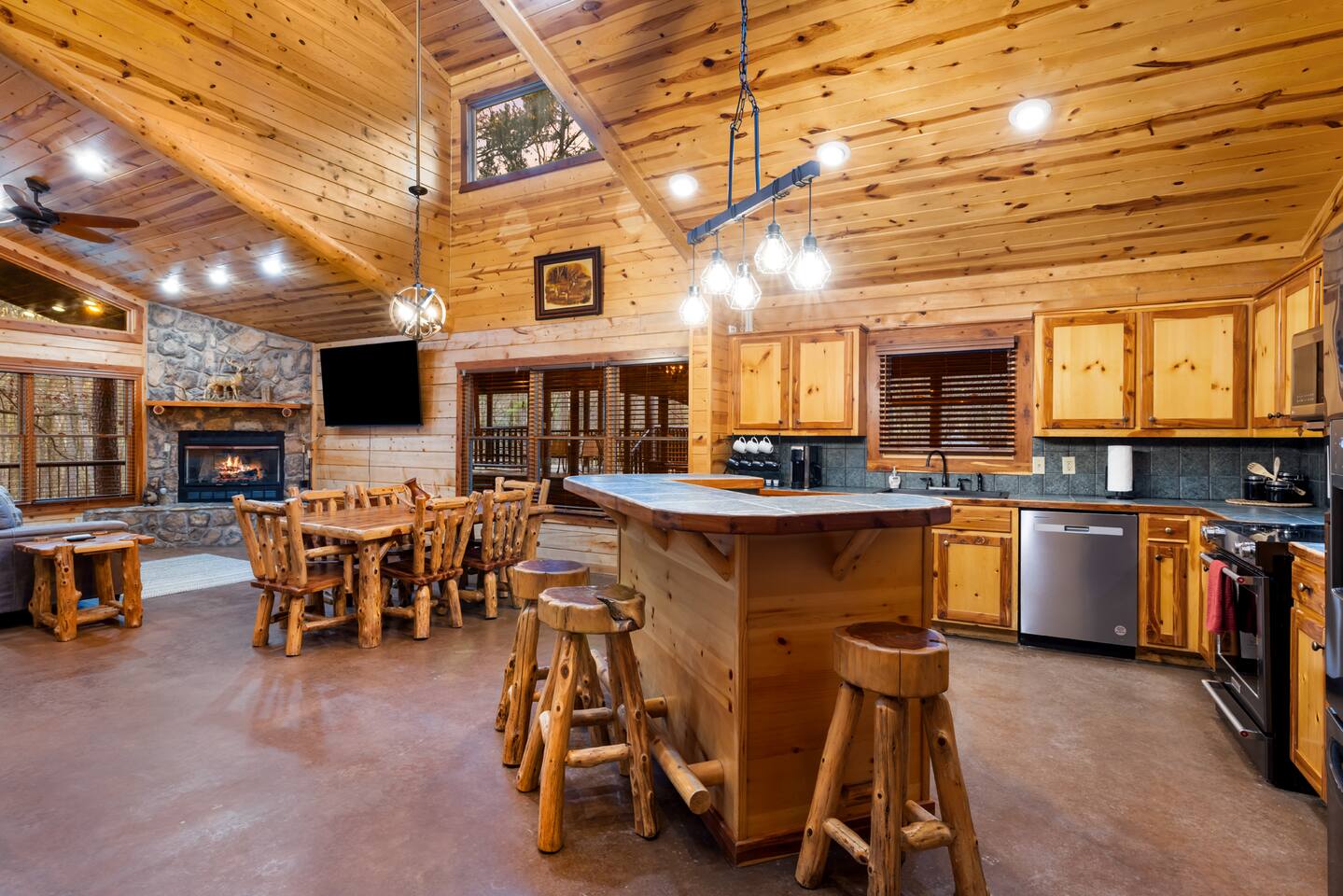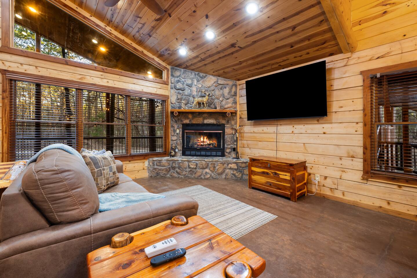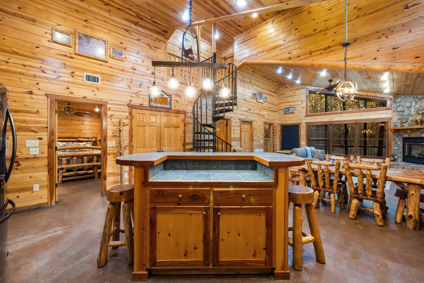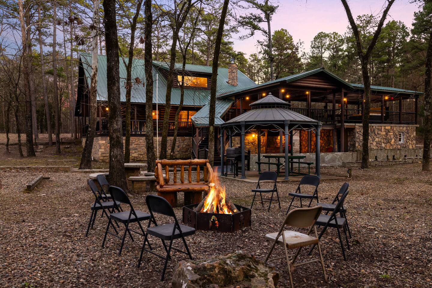 6 bedrooms 3 bathrooms total. The main house has 5 bedrooms and 2 bathrooms with a large great room and fully stocked kitchen. Then there is a separate 1 bed 1 bath unit downstairs. Great for multiple groups or families staying here together. There is a HUGE outdoor entertaining area. A wrap around porch leads you to a massive covered deck and patio area with the hot tub, table tennis and a ton of seating. Head down the steps and it will take you to another covered patio area that leads to the separate 1 bed, 1 bath unit. You will also see a Swinging bench/love seat where you can watch on as your guests play Horse Shoe and Corn hole. Step out to the spacious yard and hang out at the covered Gazebo with picnic bench seating to enjoy what comes off the BBQ. Roast hotdogs and smores at the fire pit while you watch the kids rock climb and slide down the playground. House Trained Dogs are welcome for a fee. Need help maximizing your time here? Take advantage our our Concierge team to help you find the right activities and tours. Tired or cooking? We can help you find a private chef or catering for your group (advanced booking required). This is the perfect destinations for those looking to escape the hustle and bustle of everyday life and immerse themselves in nature’s beauty. Nestled in the heart of the Ouachita Mountains, this area offers a blend of outdoor adventures and serene relaxation, making it ideal for families, groups, and outdoor enthusiasts. The region’s crown jewel is Beavers Bend State Park, a sprawling 3,500-acre park where visitors can enjoy hiking, fishing, and scenic views of the Mountain Fork River. Whether you’re casting a line into the crystal-clear waters of Broken Bow Lake, taking a leisurely boat ride across its 14,000 acres, or hiking along trails that wind through lush forests, the area offers something for everyone. For those seeking a bit more adventure, you can go on an exhilarating ziplining experiences, providing breathtaking views of the Ouachita Mountains. From there you can head to the Marina to catch a fishing tour or a famous Tiki Boat Tour. Nature lovers and families alike will find delight at the Hochatown Petting Zoo and Beavers Bend Mining Company, where guests can interact with animals and pan for gems and fossils. For a more tranquil experience, visit the Beavers Bend Wildlife Museum to marvel at the region’s impressive collection of taxidermy and wildlife dioramas. If you’re feeling lucky, make your way to Choctaw Casino & Resort – Hochatown, where you can try your hand at gaming, enjoy a variety of dining options, and take in live entertainment. Add our listing to your wishlist by clicking the ❤ in the upper-right corner. The space KEY FEATURES: 🛏️ 6 Private Bedrooms, 11 Separate beds 🍽️ Full kitchen w/ modern appliances and cookware 🔥 Cozy great room w/ flatscreen 70" TV + gas fireplace ☀ Washer + dryer ♨️ Private hot tub that is drained, sanitized & refilled at every turnover 📺 7 Large Smart TV's 🔥 Outdoor fire pit + lighting 🛻 Free parking for multiple vehicles 🚍 2 RV Hookups and parking spots 🚤 Covered parking perfect for your boat and truck 🕹️ Game and activity area featuring Table Tennis, Horse shoes and Corn Hole 🏓 Spacious, covered back deck with brand new hot tub and tons of seating 🌲 Outdoor area with a fire pit, Gazeebo, Picnic Benches, BBQ & plenty of space for games and seating for gathering 🛝 Children's play set 🌐 Lighting Fast Wifi 🐕 Dog Friendly ($199 for up to 2 dogs) The Location: So convenient to everything you need: 🏖 2 miles to Broken Bow Lake 🎳 Less that a mile to Bowling 🎱 Less that a mile to Billiards 🎤 Less that a mile to Karaoke 🎮 Less that a mile to Arcade 🍷 Less that a mile to Girls Gone Wild Wine Bar 🍺 Less that a mile to Beavers Bend Brewery ☕️ Less that a mile to Coffee Shop 🍳 Less that a mile to Convenience Store 🍔 Less that a mile to multiple restaurants, grills, Pizza shops, BBQ, bars etc 🦖 1 mile to indoor mining, Dino mini golf, Wax hand creations, Pirates Cove and more 🫣 2 miles to the Maze of Hochatown 🚤 2-4 miles to multiple boat ramps 𓀒 3 miles to Zipline Tours 🛟 4 miles to Marina 🐟 4 miles to fishing tours 🛥 4 miles to Tiki Boat tours ⛳️ 4 miles to mini golf 🏎 4 miles to Go-Kart Racing 🏎 4 miles to Polaris Slingshot Rentals 🛺 5 miles to UTV and Jeep Rentals 🏞 8 miles to Beavers Bend State Park 🌽 10 mile to Walmart 🎰 12 miles to Choctaw Casino Bedroom breakdown 🛏 Upstairs left bedroom: 1 king bed 🛏 🛏 🛏 Upstairs right bedroom: 1 king bed + 2 full beds 🛏 Main level left bedroom: 1 king bed 🛏 🛏 Main level middle bedroom: 2 queen beds (bunk beds) 🛏 Main level right bedroom: 1 king bed 🛏 🛏 Downstairs separate room: 2 queen beds 🛏 Living room: Pullout queen sofa Replenishing Supplies: Our accommodations are designed for self-catering convenience. We are delighted to furnish you with initial supplies to kickstart your stay. Once these supplies are depleted, you will need to replenish them independently during your stay.