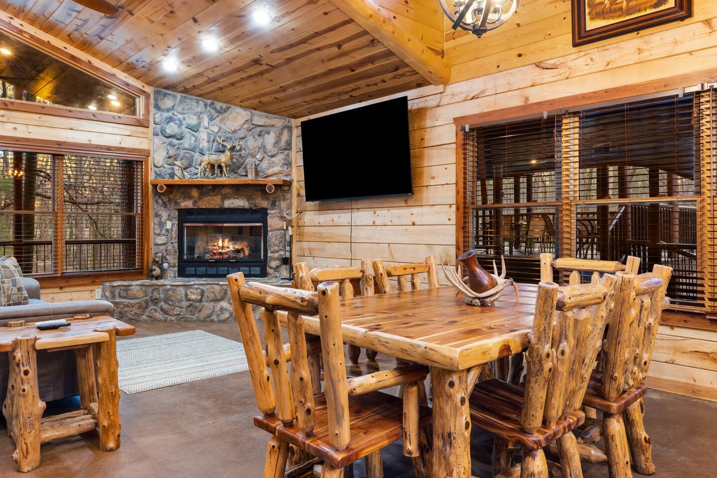 Welcome to the @DeerCrossingLodge a Hideaway Retreat where you and your group will enjoy private and serene settings with so many fun activities to do onsite and endless adventures within minutes from the lodge. The lodge has so much to offer for inside and out. Bring your boats, bring your trucks and bring your RVs! There are 2 RV hook ups, Large covered parking which is perfect for your boat and truck! 2 Separate Living quarters, perfect for multiple groups or families traveling together.